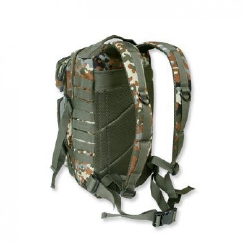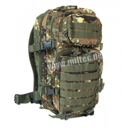 Bojový batoh M.O.L.L.E. System, v maskovacím potisku Flecktarn, velikost střední, určený pro kratší/1-2 denní taktické operace. Mimo jiné má oddělení pro uložení hydration packu a dále po celém obvodu batohu je účelně našito velké množství pevných popruhů k připevnění M.O.L.L.E. výstroje – lze však snadno připojovat i moduly a kapsičky nosných systémů MODULAR a ALICE!). Batoh má dohromady čtyři oddělení (dvě velká, jedno střední, jedno malé) se samostatným uzavíráním na rychlé dvojité zipy pro snadný přístup k výstroji.