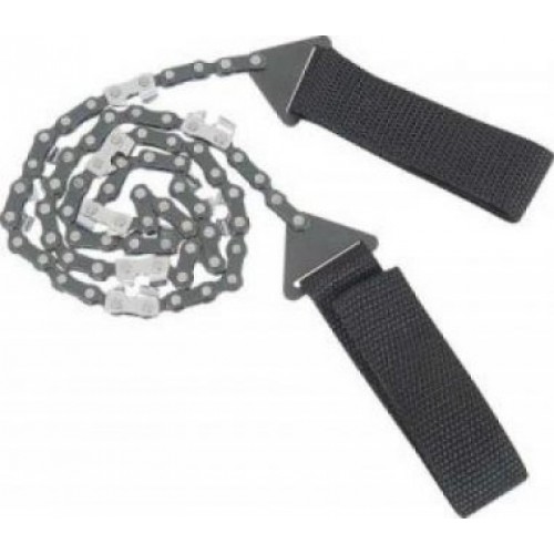 Kapesní řetězová pila určená jako součást výbavy pro přežití a jako záložní nástroj pro krizové situace. zásadními přednostmi jsou naprostá skladnost, vysoká pevnost, snadné ovládání, jednoduchá údržba a dlouho přetrvávající ostrost pilky. Délka pilky 64cm, váha 120 g.